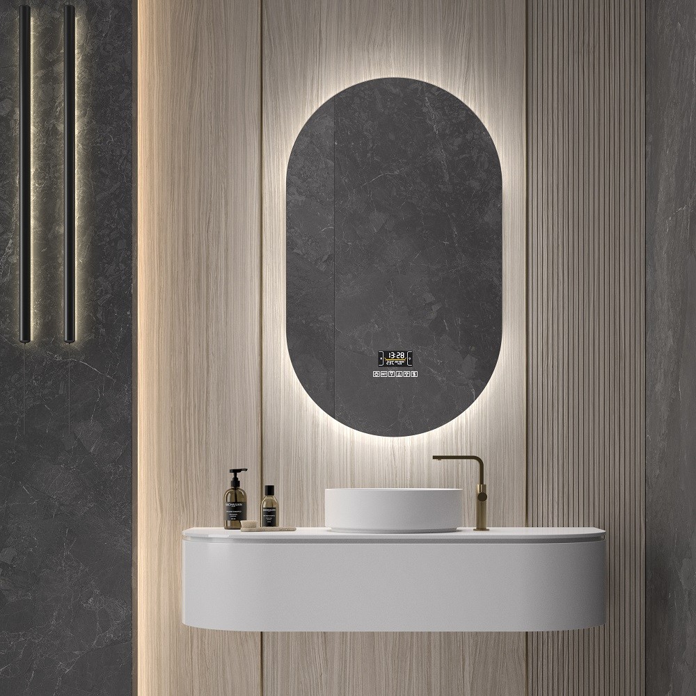 Espejo ovalado con retroiluminación led incorporada Borneo PRO. Este espejo moderno destaca por su diseño actual y minimalista siendo al mismo tiempo funcional y práctico. A diferencia del modelo estándar, este espejo incorpora las ultimas innovaciones tecnológicas para que tu estancia diaria en el baño sea aún más cómoda.