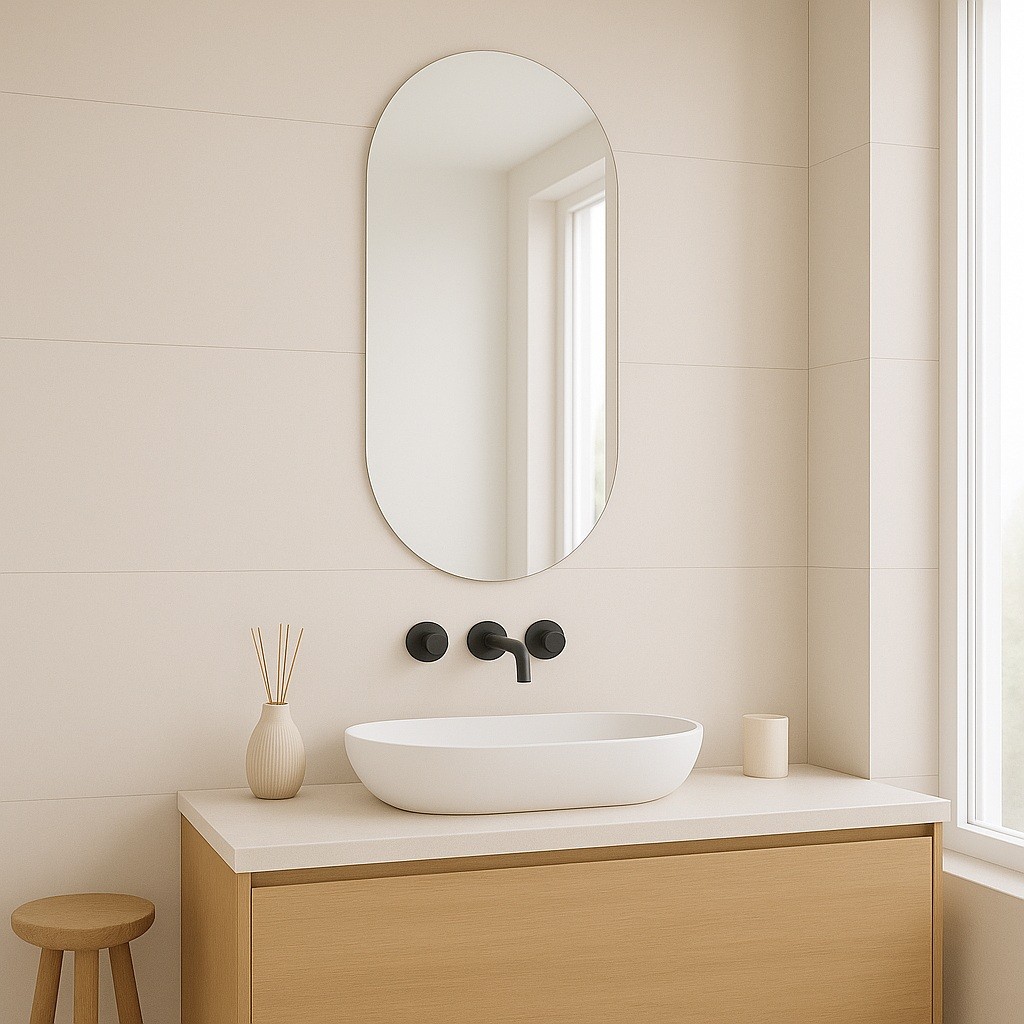 Este espejo ovalado sin luz es la definición de simplicidad elegante. Su forma alargada vertical suaviza el espacio y aporta un toque natural y relajado al baño. Perfecto para interiores minimalistas, escandinavos o japandi, combina a la perfección con lavabos de líneas orgánicas y acabados cálidos como la madera clara. El cristal pulido de alta calidad ofrece una excelente reflexión y ligereza visual. Ideal para quienes buscan un espejo decorativo moderno, funcional y sin artificios que armonice con entornos serenos y luminosos.