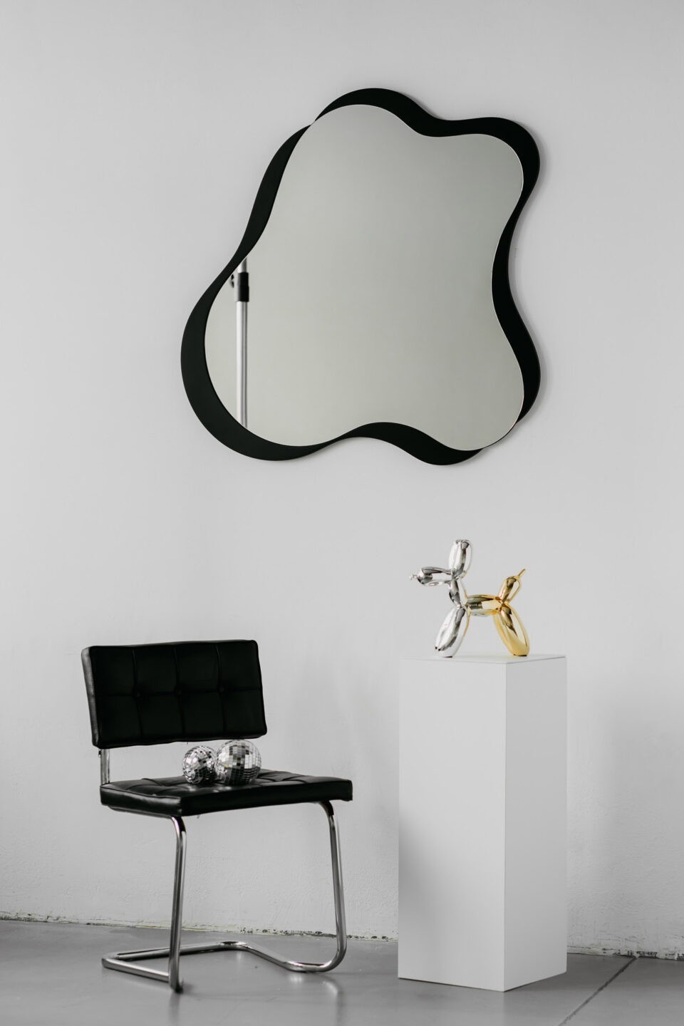 Aporta un toque artístico y contemporáneo a tu hogar con este espejo de pared asimétrico con marco negro. Su diseño de líneas fluidas y bordes orgánicos transforma cualquier espacio en una galería moderna. Ideal para recibidores, salones o dormitorios, este espejo no solo refleja luz y amplitud, sino que también se convierte en el foco visual del ambiente. El marco negro mate resalta su forma escultural y combina fácilmente con estilos minimalistas, industriales o eclécticos. Un accesorio decorativo que redefine el concepto de espejo convencional.