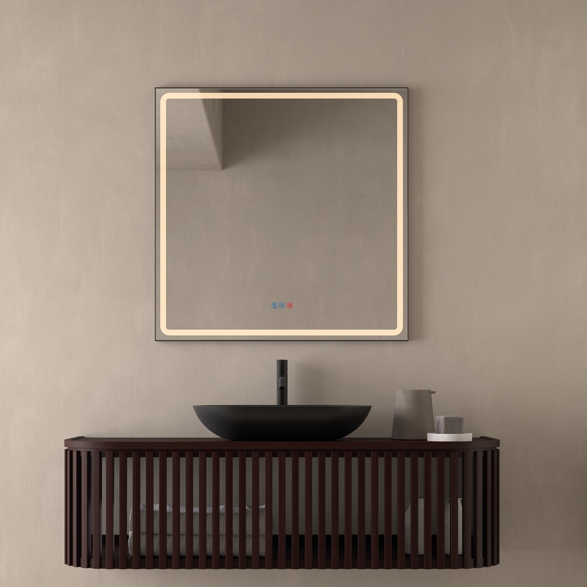 Este espejo rectangular con luz frontal y marco negro combina tecnología y diseño en una pieza sofisticada para el baño moderno. La iluminación LED perimetral proporciona una luz frontal clara y homogénea, ideal para maquillaje, afeitado o cuidado personal. Su marco negro minimalista enmarca el cristal con elegancia, aportando un contraste visual que realza el diseño del espacio. Con controles táctiles y eficiencia energética, este espejo LED con marco negro ofrece funcionalidad avanzada sin renunciar al estilo. Una elección perfecta para ambientes contemporáneos con carácter.