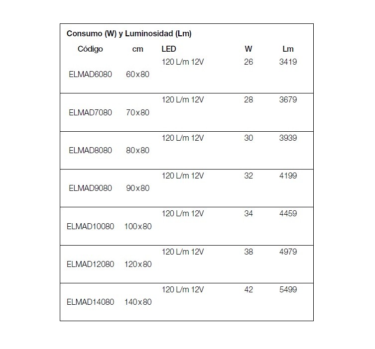 - Colores de iluminación a elegir: Luz fría: 6.000ºK, Luz neutra: 4.000ºK, Luz cálida: 3.000ºK.