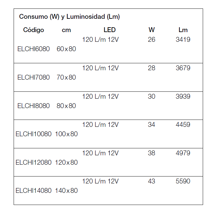 - Colores de iluminación a elegir: Luz fría: 6.000ºK, Luz neutra: 4.000ºK, Luz cálida: 3.000ºK.