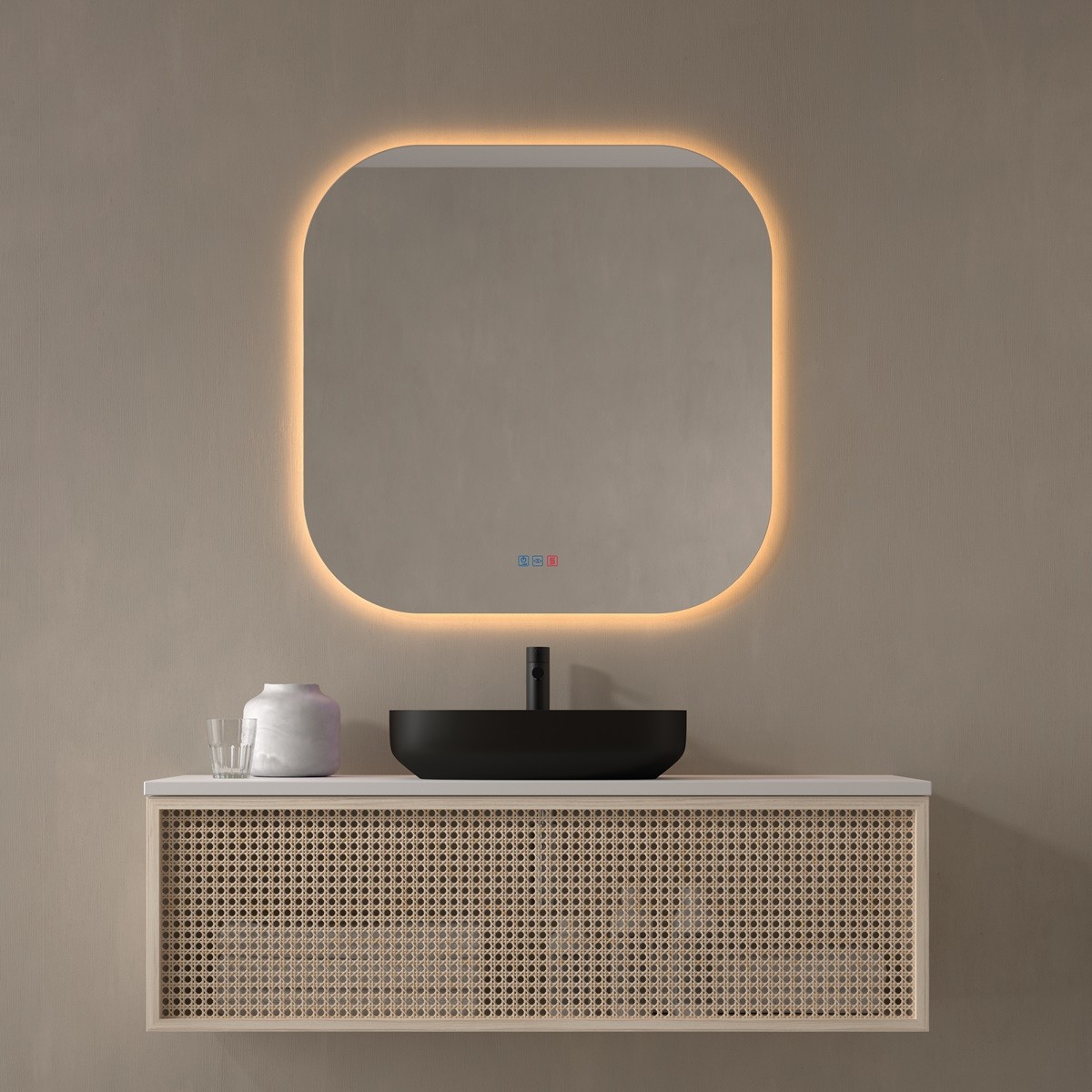 El espejo cuenta con retroiluminación ambiental perimetral (luz mural).