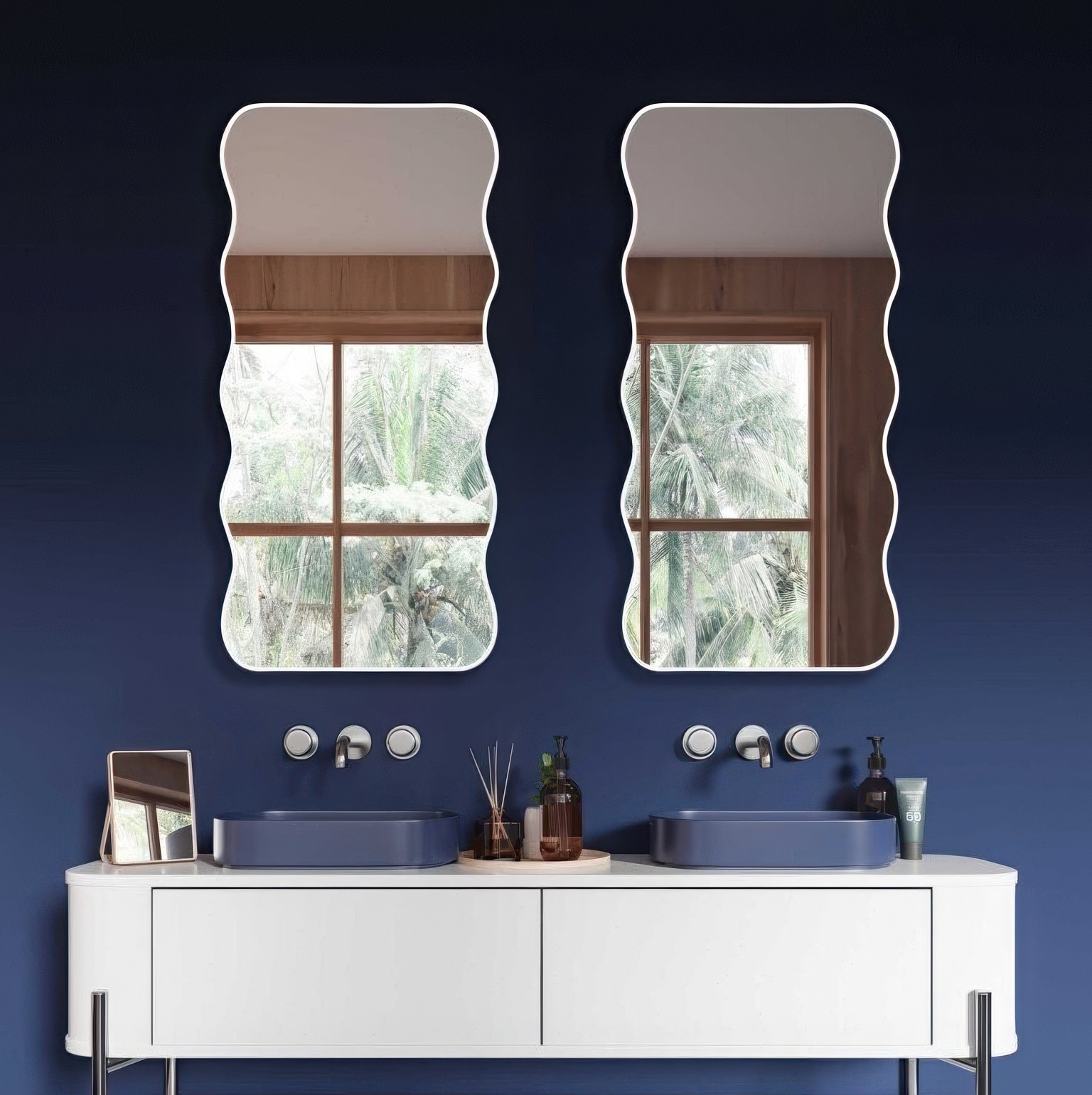 Espejo Wavy Blanco – Estilo Moderno y Dinámico para el Baño