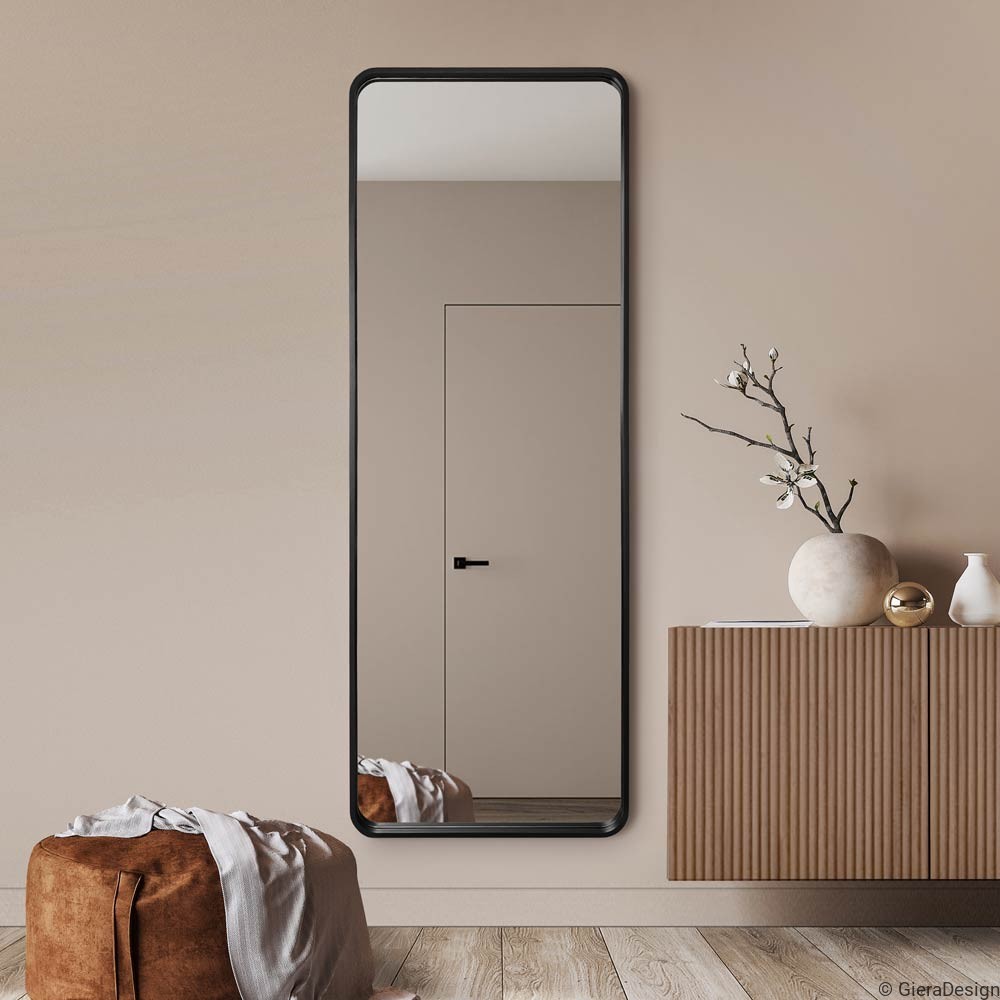Espejo rectangular grande de cuerpo entero con esquinas redondeadas, marco negro y retroiluminación LED, ideal para dormitorios, vestidores, recibidores o zonas de paso con estilo moderno. Su diseño vertical estiliza visualmente el espacio y permite una vista completa, mientras la luz LED perimetral proporciona una iluminación suave y decorativa. Perfecto para ambientes minimalistas, escandinavos o contemporáneos. Espejo decorativo con luz integrada y marco negro, funcional y estético, pensado para interiores que combinan elegancia, practicidad y diseño limpio.