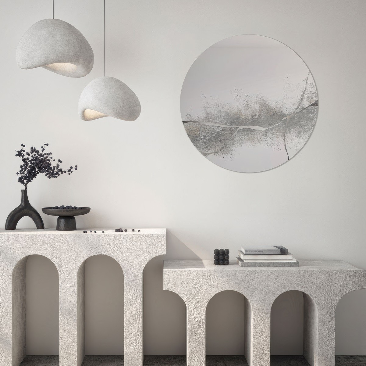 El espejo artístico Kintsugi, es una obra maestra que fusiona la belleza moderna con la elegancia de la tradición japonesa. El diseño distintivo de este espejo original está inspirado en la antigua práctica japonesa del kintsugi, un arte que celebra la belleza de las grietas y fracturas. La decoración captura la esencia de esta técnica, incorporando una delicada veta plateada que atraviesa la base con elegancia. Esta veta difuminada, casi como un rayo de luz, resalta el aspecto moderno del espejo mientras evoca el encanto atemporal del kintsugi.