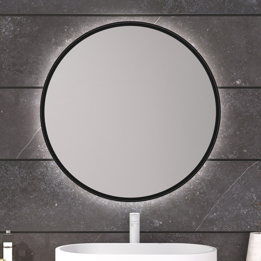 Espejo Redondo Retroiluminado Marco Negro