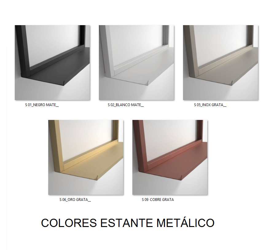 - Soporte metálico con estante, disponible en varios colores.