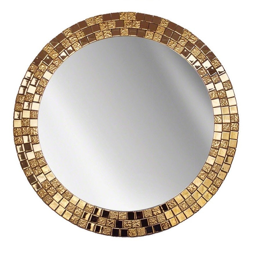 Este espejo redondo con marco dorado tipo mosaico es una auténtica joya decorativa para el baño o tocador. Su contorno está compuesto por pequeños azulejos dorados con acabado brillante y texturizado que capturan la luz y reflejan un estilo sofisticado y glamuroso. El diseño combina elegancia clásica con estética contemporánea, siendo ideal para baños modernos, decoraciones art déco o interiores con toques metálicos. El marco dorado aporta calidez visual, mientras que la forma redonda suaviza el conjunto. Perfecto para quienes buscan un espejo decorativo de lujo que realce el ambiente con carácter y distinción.