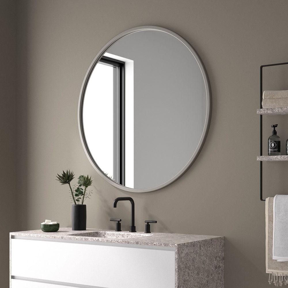 Espejo redondo sin luz minimalista Leyte. Ideal para baños modernos. La elegancia de este espejo destaca gracias a su forma simple, detalles refinados así como a su marco, disponible en varios colores a elegir. Gracias a sus lineas suaves, se adapta perfectamente a cualquier interior, ya sea de estilo escandinavo, ecléctico, clásico o moderno.