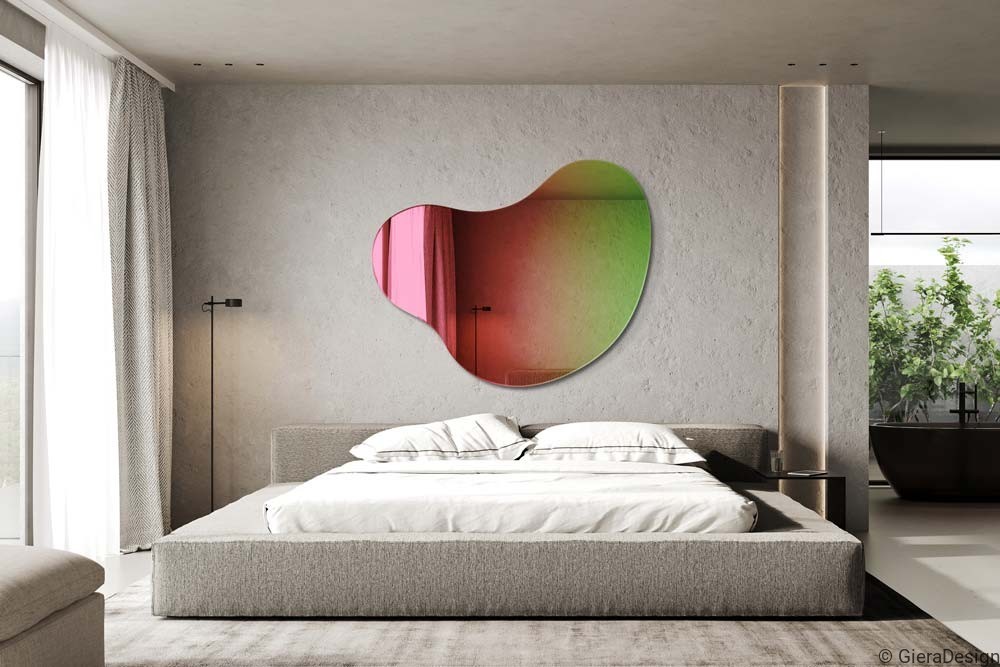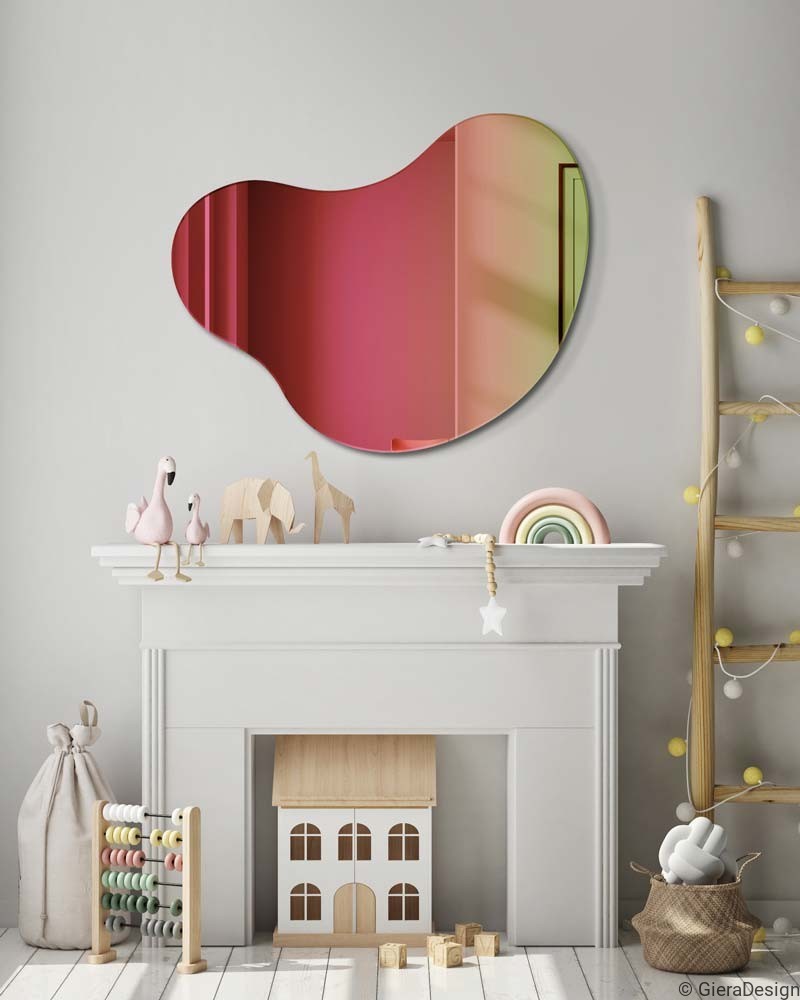 La belleza del diseño del espejo Plama Nº5 Rainbow se aprecia en su color y su forma que le otorgan una personalidad única e interesante. Ofrece un reflejo que cambia de color según el ángulo de visión. Refleja el interior en colores intensos, desde el rosa, pasando por el naranja, hasta el verde jugoso. Una ventaja adicional de este espejo es su forma irregular y orgánica, que encaja a la perfección con las tendencias actuales de interiorismo. Este espejo decorativo multicolor es ideal para cualquier interior ya sea un salón comedor, una entrada o un dormitorio.